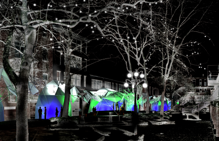 This competition was for the City of Vancouver to develop a temporary performing arts space in Blood Alley. The design pays homage to the Canadian explorer, Simon Fraser, and his discovery of Hell's Gateway through the raging white-water rapids while descending to the rich valleys of the Lower-Mainland of British Columbia. Both the canyon and the "alley" have the same rugged and confining expression created by the walls of massive material towering over the passersby.